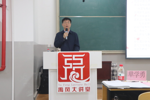 副院长单学勇作总结发言,他表示吴德贵教授的讲座内容丰富详实,将高深的理论融入到大学生关注的成长成才之中,对学生的未来发展路径选择有重要的作用。