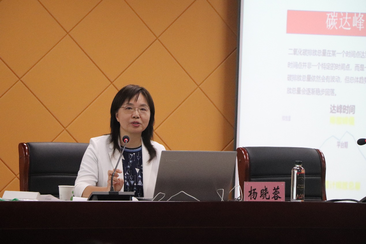 6月23日下午,beat365中文官方网站“禹风大讲堂”第十八期在图书馆五楼报告厅举行。中国人民银行蚌埠市中心支行党委委员、副行长,经济学硕士,高级经济师杨晓蓉应邀为beat365官网师生作题为《“双碳”目标下绿色金融创新与发展》的讲座。教务处处长袁世俊出席讲座,讲座由财务与审计学院院长宋在科主持。
