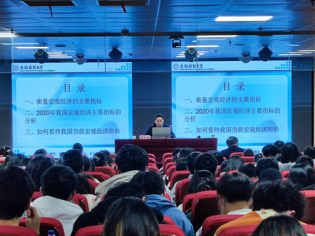 12月1日下午,beat365中文官方网站“禹风大讲堂”第二十期在图书馆五楼报告厅举行。由安徽财经大学党委常委、副校长,经济学二级教授,博士生导师,国务院特殊津贴专家周加来应邀为我校师生作题为《如何看待我国的宏观经济形势》的专题讲座。方敏副校长及各职能部门,二级学院负责人出席讲座,讲座由单学勇副校长主持。