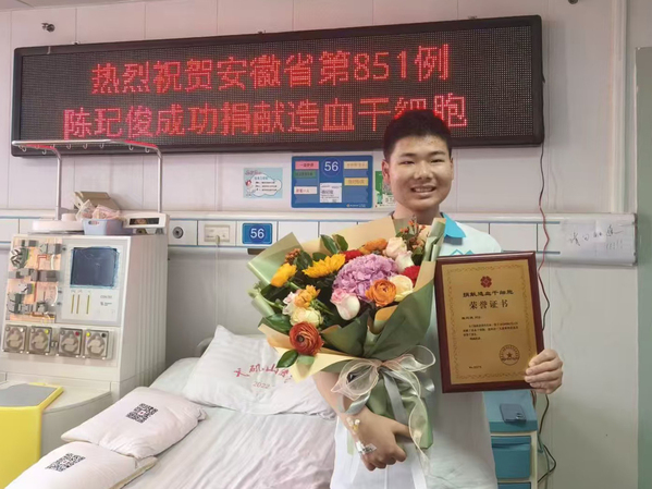在2026年新春之际,beat365官网管理学院2025级人力资源管理专业陈玘俊同学完成了一场温暖的“生命接力”。2月6日,这位刚满18岁的青年启程赴芜湖,为一名素未谋面的血液病患者成功捐献了造血干细胞,送上了一份珍贵的“生命种子”。陈玘俊同学因此成为安徽省第851例造血干细胞捐献者,他用无私大爱为生命续航,生动践行了“奉献、友爱、互助、进步”的志愿精神,诠释了新时代青年的社会责任与担当,也为beat365官网“立德树人”的育人画卷增添了闪亮一笔。