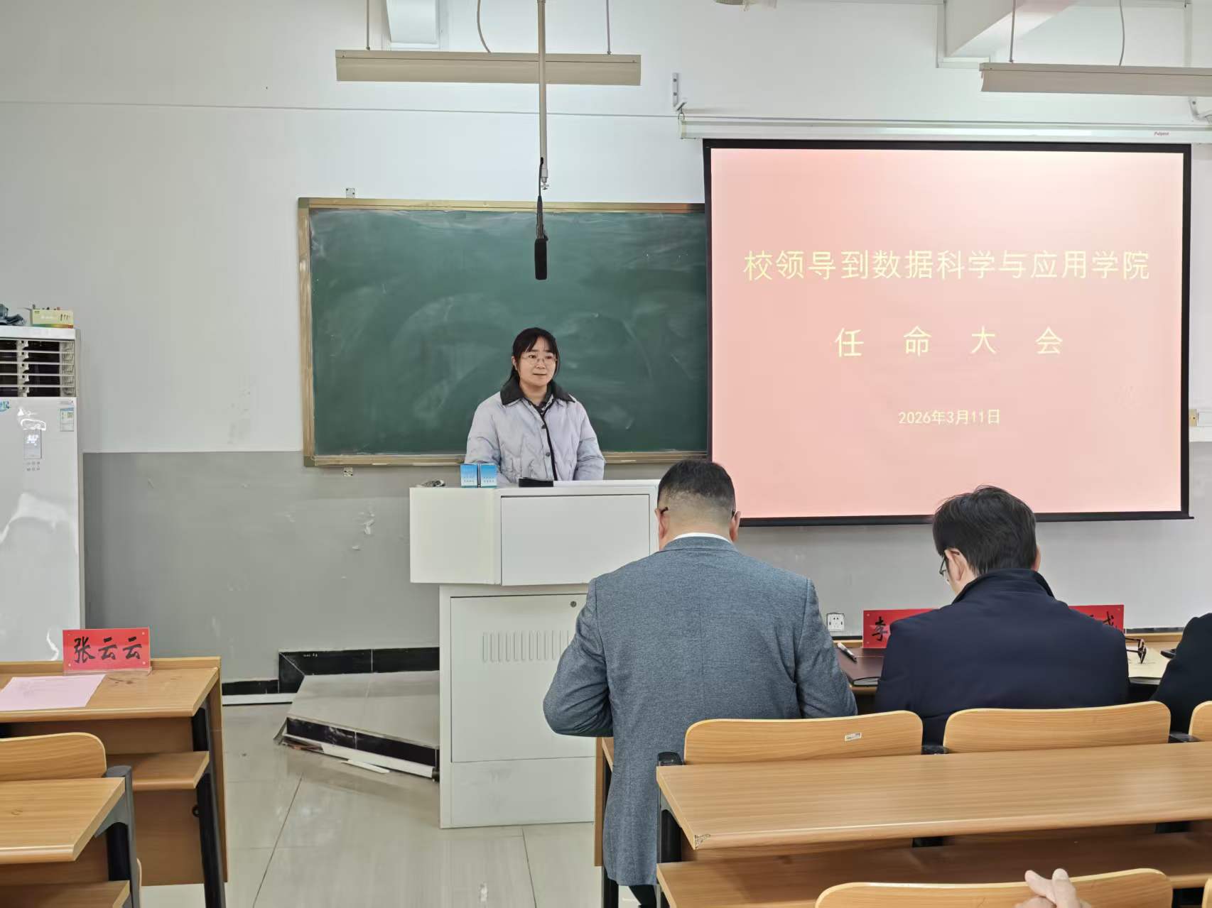 3月11日下午,校长刘福成、党政办主任李明一行赴数据科学与应用学院召开任命大会,学院全体教职工参加。